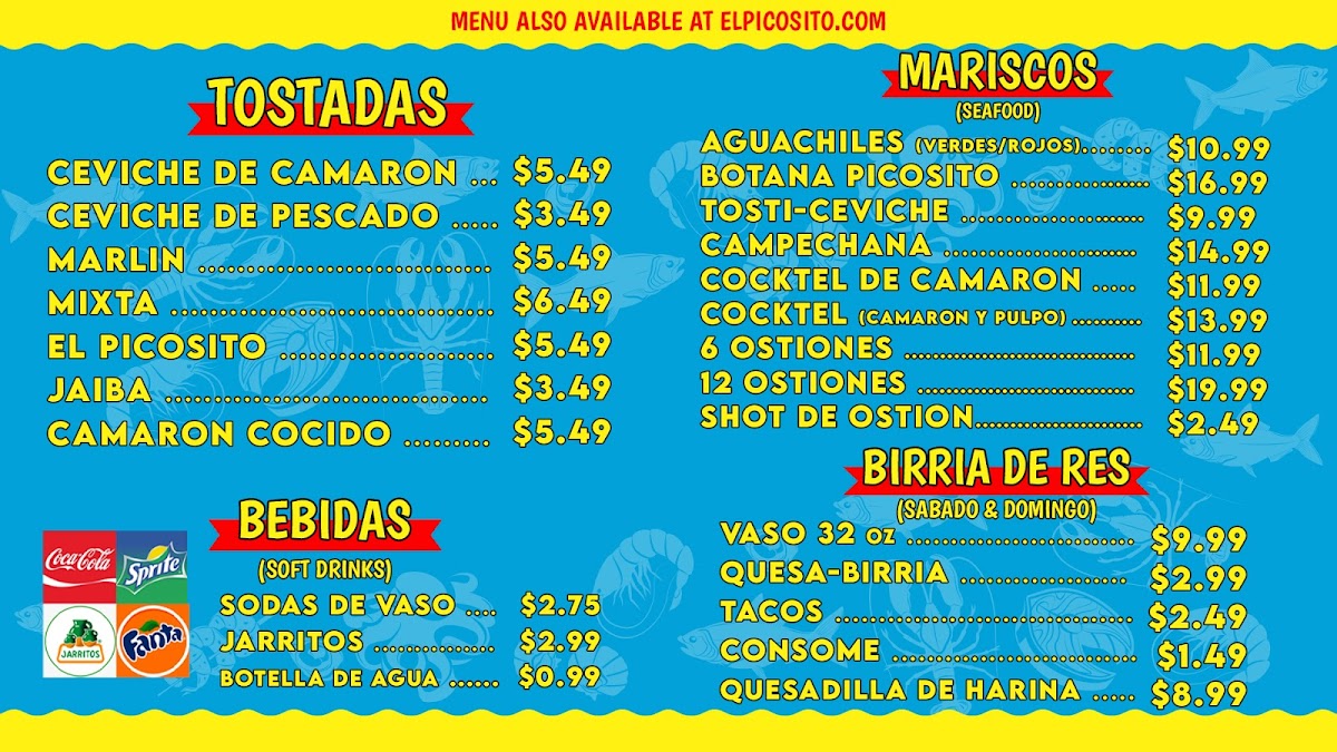 In addition to the fantastic meals, you can wash it all down with refreshing Sodas and add extras like a side of Fries/Papas for just $4.99, or some Frijoles/Arroz (beans and rice) to round out your meal. With its flavorful and diverse offerings, Mariscos El Picosito is sure to leave you satisfied and craving more!